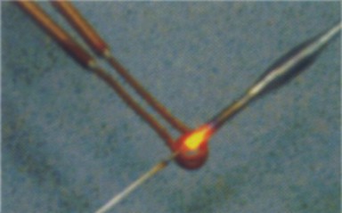 ● 本機的高頻發射器采用高性能的渦流熔接技術,機器在運行狀態時,焊接頭的加熱溫度由高頻發射器控制儀鎖定在額定的工作溫度(可以通過調節電流大小,改變溫度)。當金屬焊件在高頻發射器的高渦流磁場中,被加熱后(達到設定溫度),高頻發射器將停止加熱,上冷模氣缸帶動塑料焊件下壓,在一定的時間內被熱熔,從而固化。